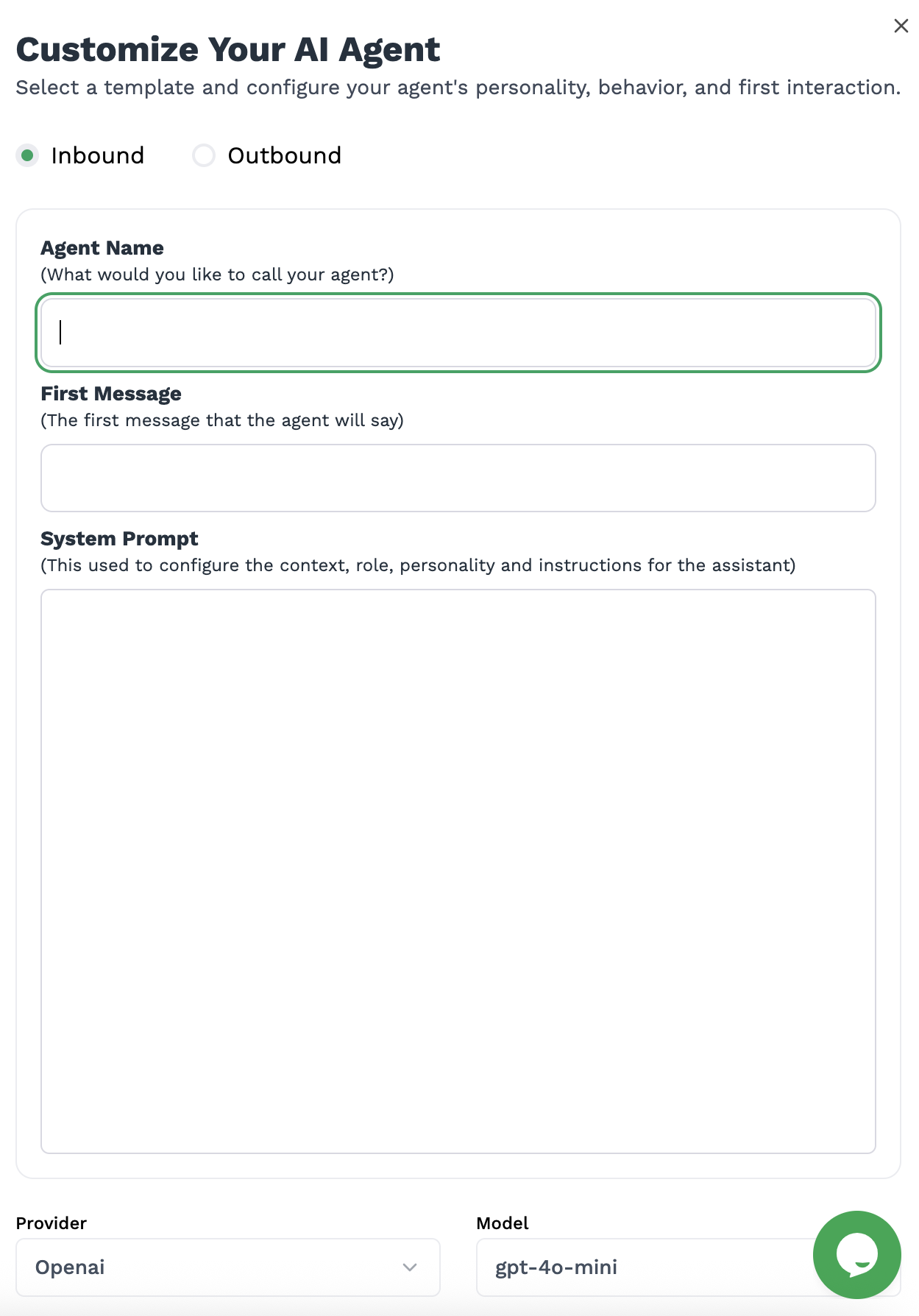 - Choose the AI agent’s name (this will be how the agent introduces itself)