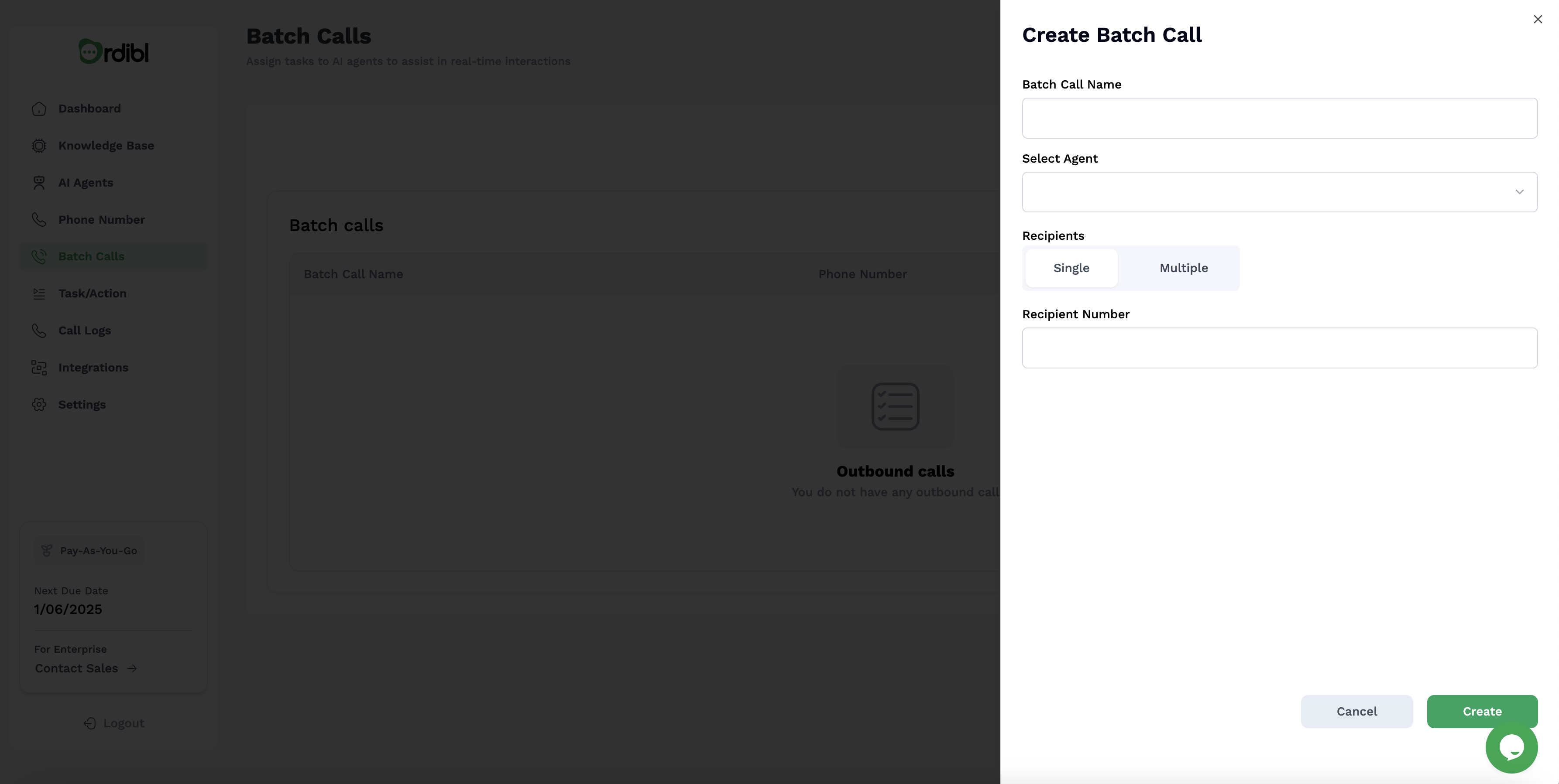 - AI Agent: You need to have an Outbound AI agent configured with a voice profile and conversation script.