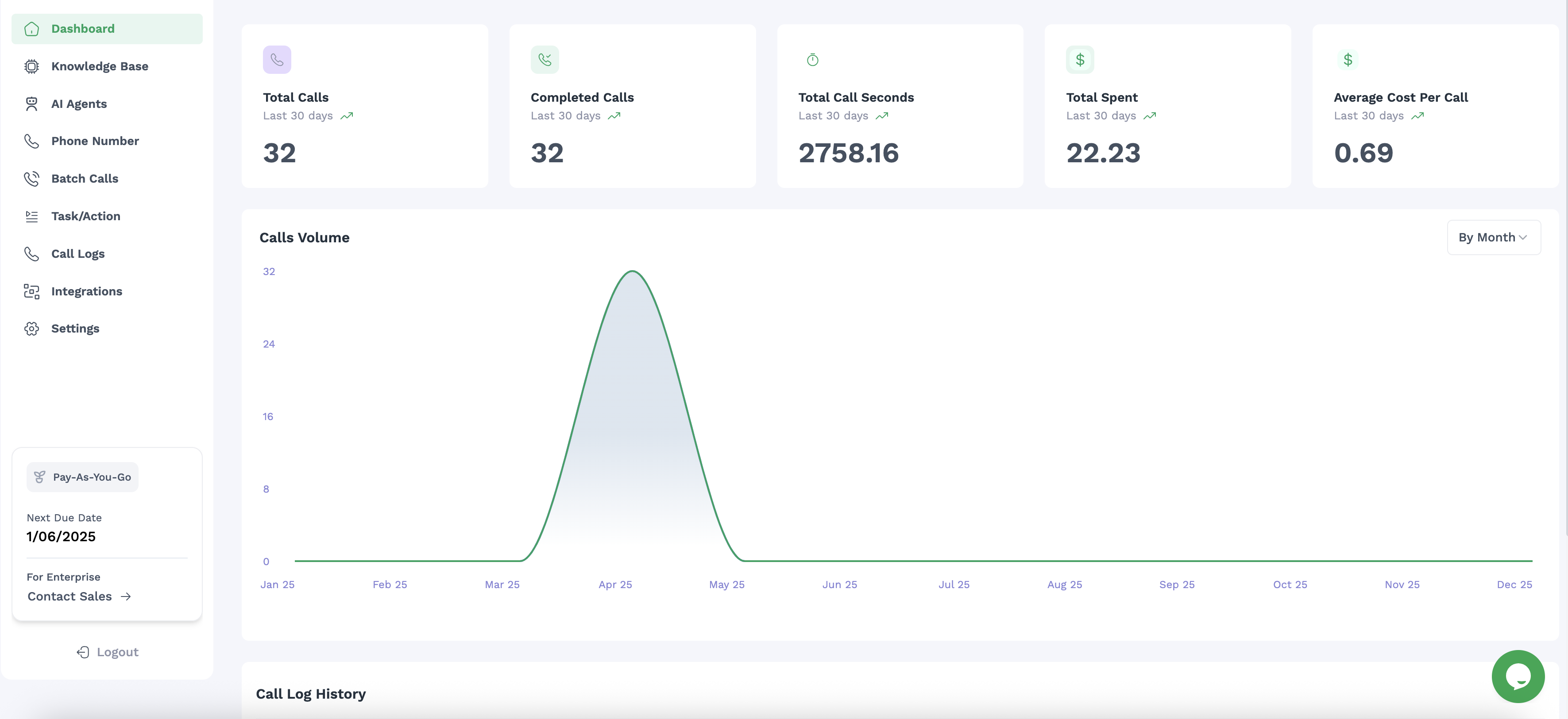 - Batch Calls: Schedule and manage bulk calling campaigns