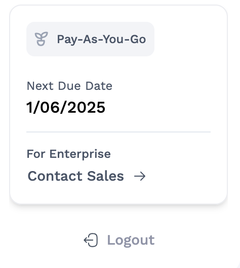 The bottom left section displays:- Pay-As-You-Go: Your current billing plan