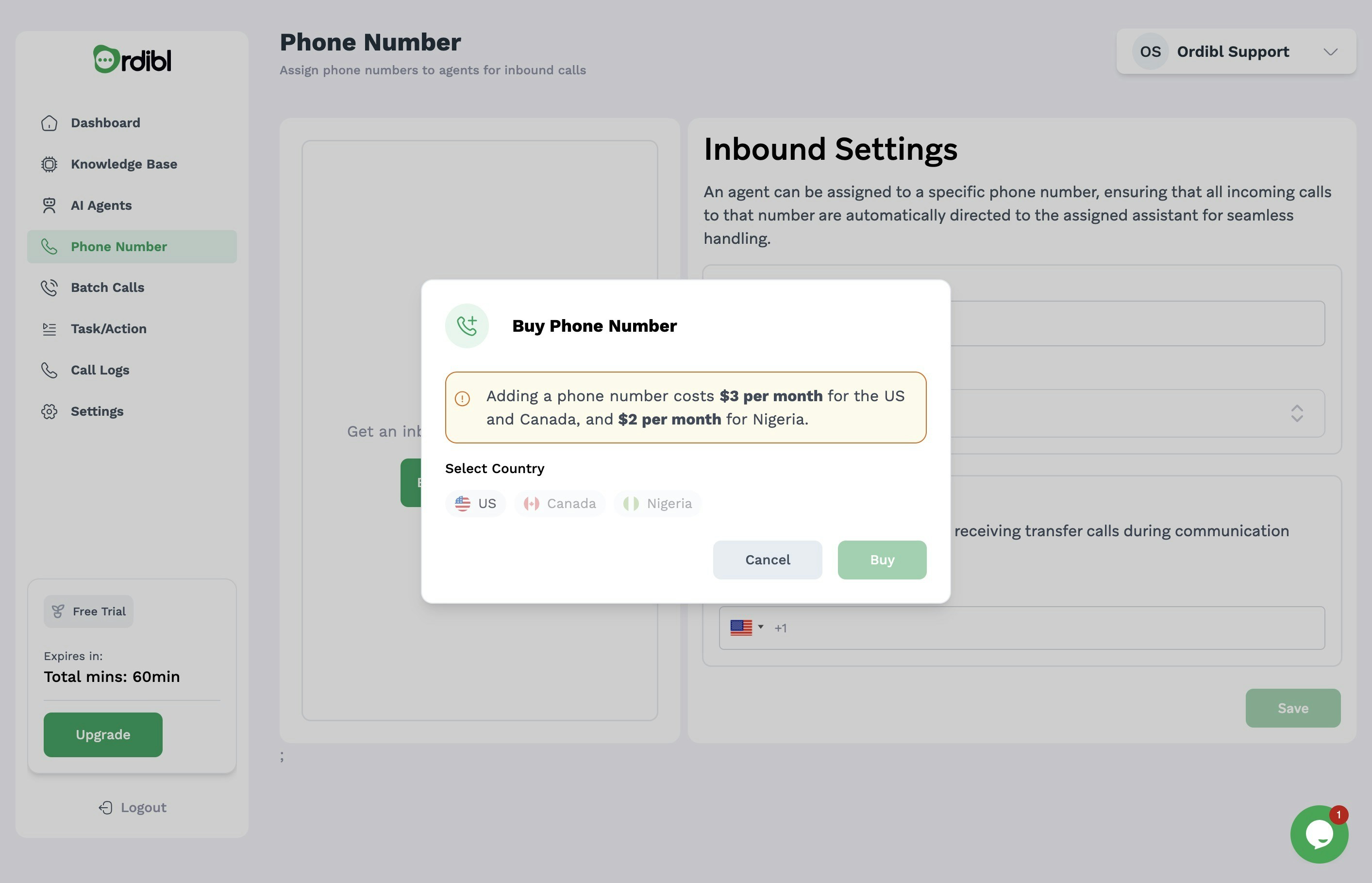 - Ensure you select a number type that suits your business needs (More countries will be added in the future)