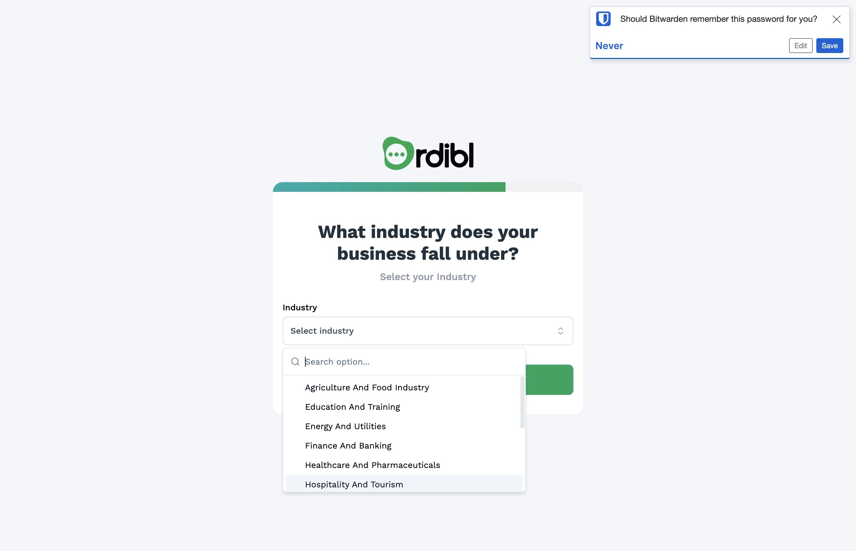 Select the industry that best fits your needs. This helps Ordibl tailor its services to your specific requirements.