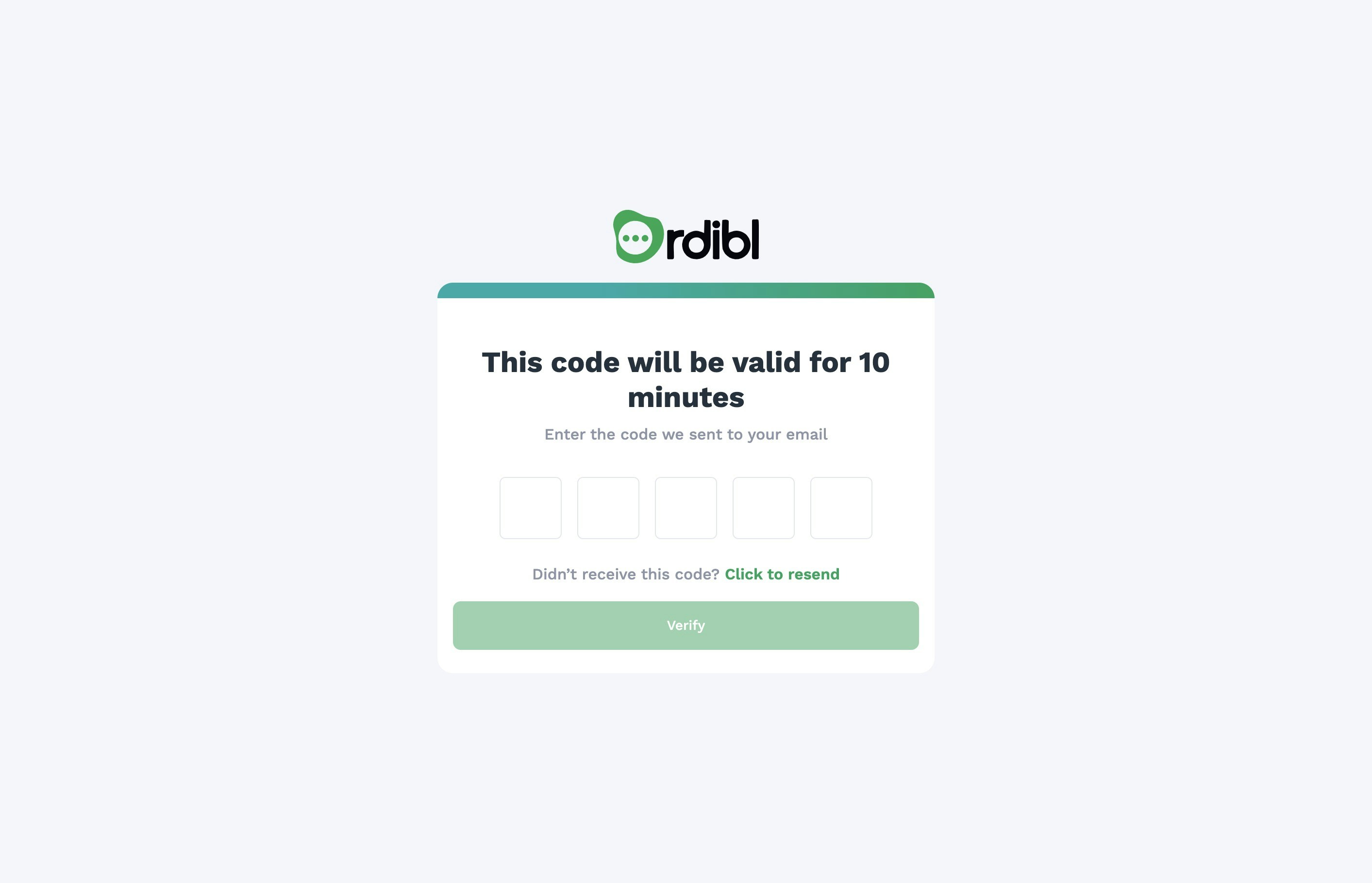 Next, you will receive a One-Time Password (OTP) via email. Check your inbox for an email from Ordibl and enter the OTP in the provided field on the website. This step is crucial for verifying your identity and securing your account.