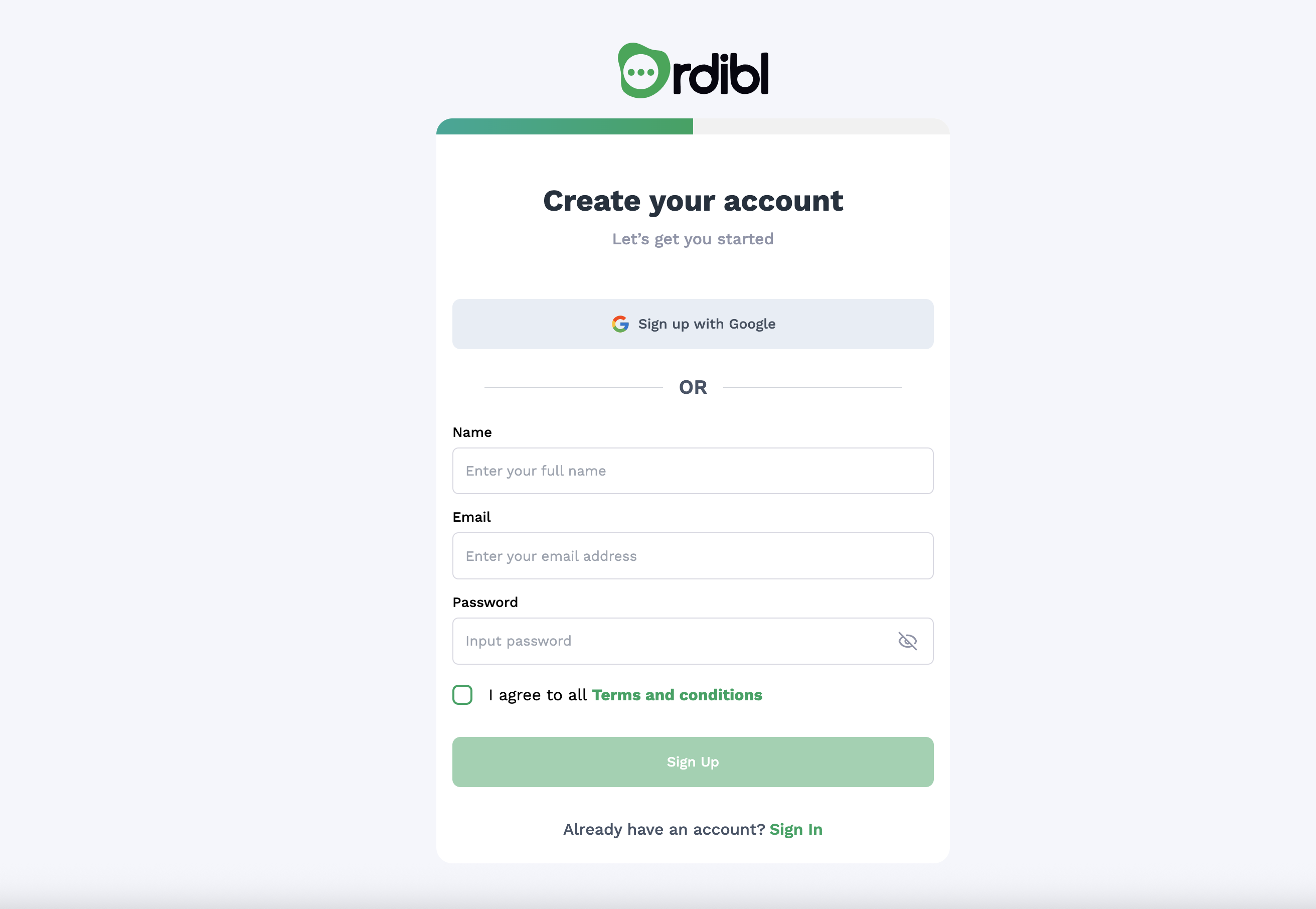 - Click the “Sign In” button to access your Ordibl Dashboard.